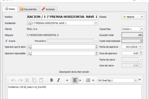 Se adapta a empresas industriales y a empresas dedicadas al servicio de mantenimiento a terceros. Permite tener control de los mantenimientos e intervenciones realizadas en las máquinas conociendo su historial, de los operarios que realizaron el mantenimiento, de los repuestos empleados, del coste de la reparación, y del tiempo empleado en la misma