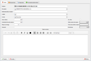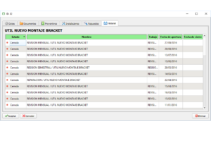 También nos permite llevar un control de todo tipo de repuestos, incluso de repuestos críticos, y controlar el almacén de los mismos, avisándonos si estamos bajo mínimos de un elemento importante para realizar la correspondiente orden de compra.